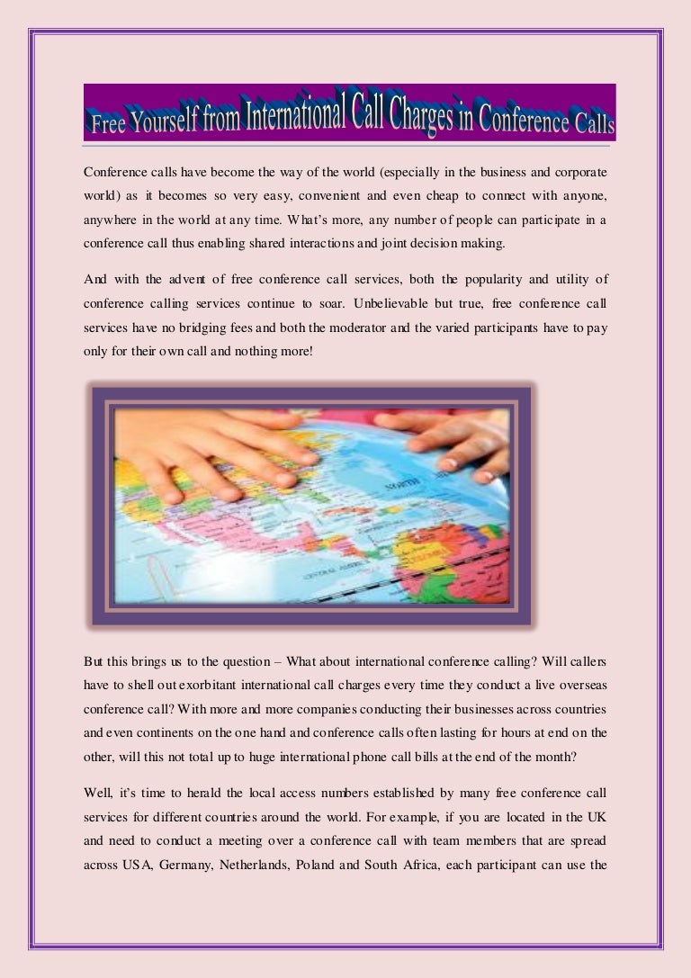 Freeconferencecall.com is one of the top five providers of global conferencing services with international hd audio conferencing in free international calling in seconds.